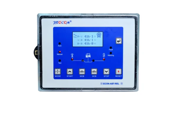 ECON-ABT Telecom Application is a universal controller for DG Set which can be configured as both automatic or manual controller. USB, RS232 and RS485 communication. Three Phase Mains Three Phase DG, Three Phase Mains Single Phase DG, Single Phase Mains Single Phase DG.