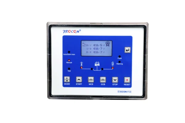 ECON is a universal controller for DG Set which can be configured as both automatic or manual controller. LCD Display, USB, RS232, RS485 communication. Three Phase Mains Three Phase DG, Three Phase Mains Single Phase DG, Single Phase Mains Single Phase DG.